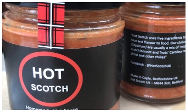 Hot Scotch est une nouvelle entreprise en démarrage, produisant de la sauce piquante artisanale de Cople, Bedfordshire, Royaume-Uni. Utilisant cinq ingrédients principaux pour apporter de la chaleur et de la saveur aux aliments, ses piments (Capsicum) sont généralement un mélange de «moyens» (Scotch Bonnet) et de «piquants» (Carolina Reapers, Ghost) et d'autres piments.