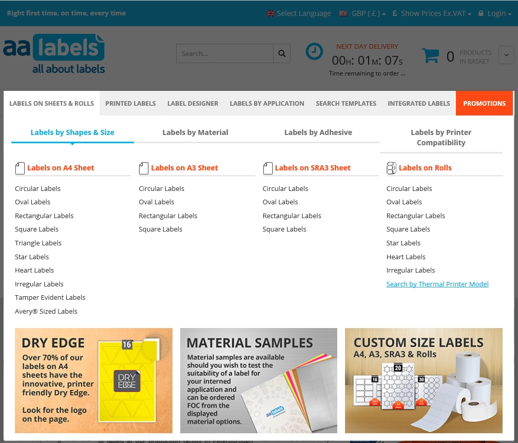 Chez AA Labels, nous disposons d'une gamme de 4 tailles de support courantes et standard :